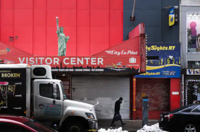 People walk past a closed retail store in New York. (Justin Lane/EPA-EFE/REX/Shutterstock)